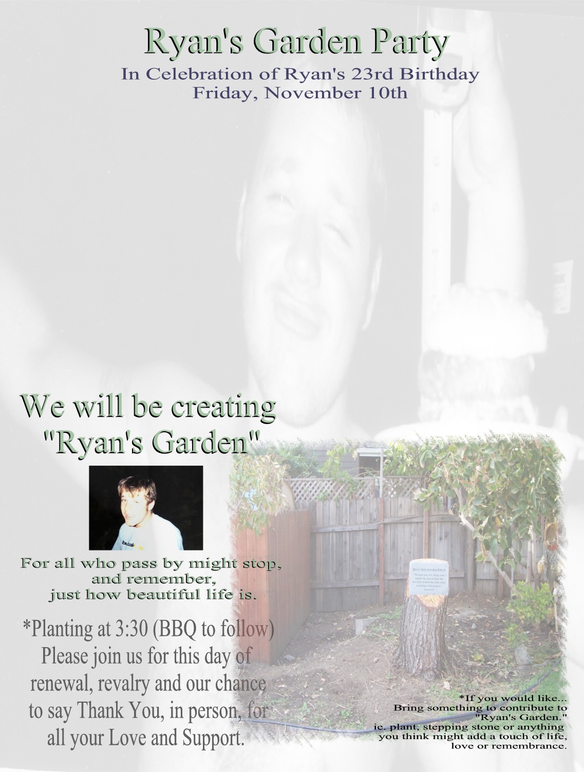 Ryan's Garden on his 30th Birthday